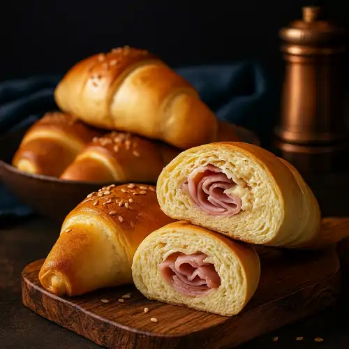 Cachito Queso y Bacon – A soft, golden-brown pastry roll filled with melted cheese and savory crispy bacon. Warm, flavorful, and satisfying, this cachito blends rich, smoky notes with buttery pastry layers for the perfect grab-and-go treat.